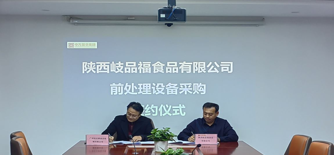 12月2日下午,陜西中萬晟華實業(yè)集團(tuán)有限公業(yè)司與廣州市天燁食品機(jī)械有限公司在西安總部舉行“岐品福食品加工項目前處理設(shè)備采購簽約儀式”。岐品福食品有限公司總經(jīng)理張洪鷹與廣州市天燁食品機(jī)械有限公司簽約代表史錄文進(jìn)行了現(xiàn)場簽約,集團(tuán)公司領(lǐng)導(dǎo)及岐品福食品有限公司相關(guān)工作人員出席了簽約儀式。
