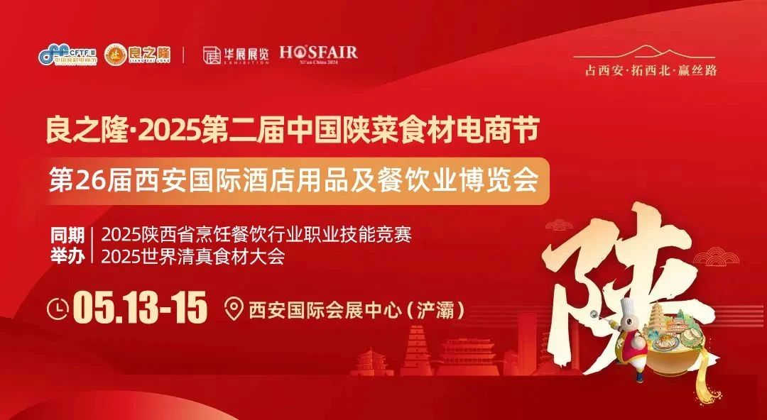 2025年05月13日--15日?,良之隆·2025第二屆中國(guó)陜菜食材電商節(jié)在西安國(guó)際會(huì)展中心(浐灞)隆重舉行,同期舉辦第26屆西安國(guó)際酒店用品及餐飲業(yè)博覽會(huì)。